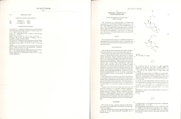 珍寶島9月25日發(fā)布公告,黑龍江珍寶島藥業(yè)股份有限公司(以下簡(jiǎn)稱(chēng)“公司”)收到美國(guó)專(zhuān)利局頒發(fā)的《專(zhuān)利授權(quán)證書(shū)》。該《專(zhuān)利授權(quán)證書(shū)》的獲得,是穿心蓮內(nèi)酯改構(gòu)化合物首次在國(guó)際方面獲得專(zhuān)利,也是公司獲得的第三個(gè)美國(guó)專(zhuān)利。